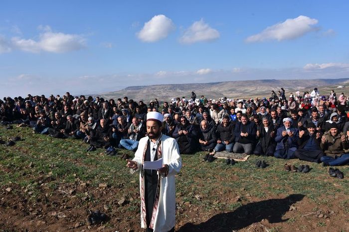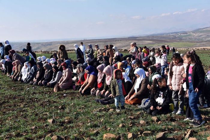 Sabah saatlerinde mahallede toplanan aralarında kadın ve çocukların da olduğu yüzlerce kişi, hep birlikte Sahabe Tepesi adı verilen bölgeye gitti.