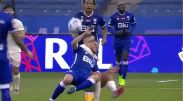 Yıldız futbolcu, Al Hilal maçında çıktığı hava topu mücadelesinde rakibinin boğazından tutarak yere düşürdü.