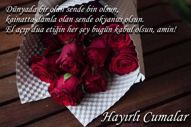 Cumanız mübarek olsun! Rabbimizin size bolca rahmet ve mağfiret etmesi, dualarınızı kabul etmesi dileğiyle, güzel bir gün geçirmenizi dilerim. Hayırlı Cumalar!