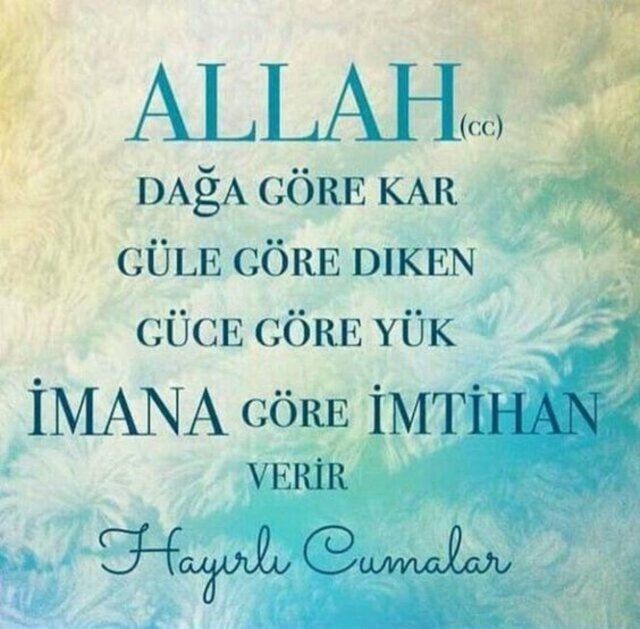 Sevgili dostum, Rabbimiz bugün bize Cuma'nın nimetlerini sunuyor. Dualarınızı eksik etmeyin ve Rabbimizden isteklerinizi samimiyetle dile getirin. Hayırlı Cumalar!