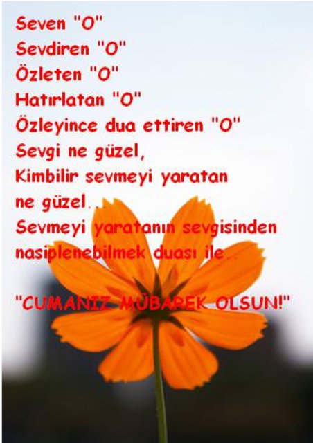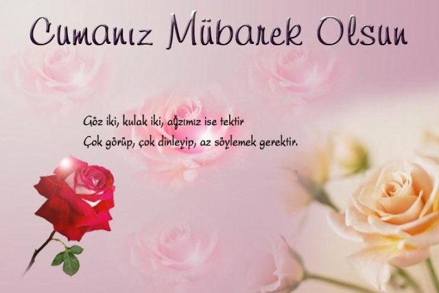 * Yükü sevgi, özü saygı, gücü barış, süsü hoşgörü olan mübarek dinimizin seçtiği haftanın özel günü olan cumanızı kutlarım