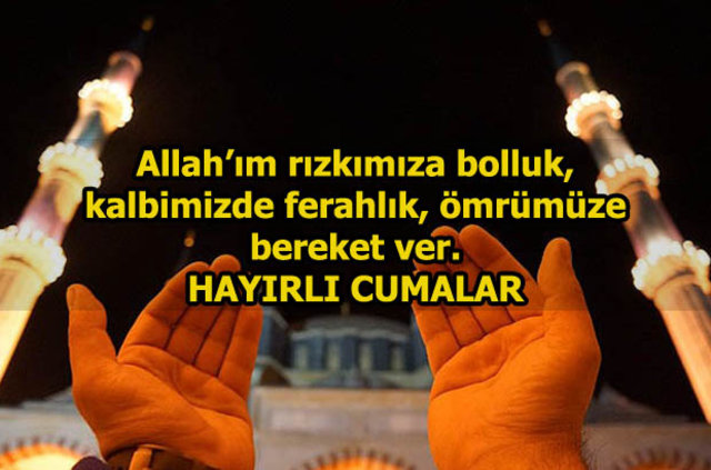 * Ey Allahım! Yaptığımız işlerde muvaffakiyetler ihsan et bizlere. Kötü yollara geçenleri gittikleri yoldan geri çevir. Evlerimize mutluluk ihsan eyle. Taşımakta zorlanacağımız yüklerle bizleri sınavdan geçirme. Darda ve muhtac koyma. Amin. Hayırlı cumalar dilerim.
