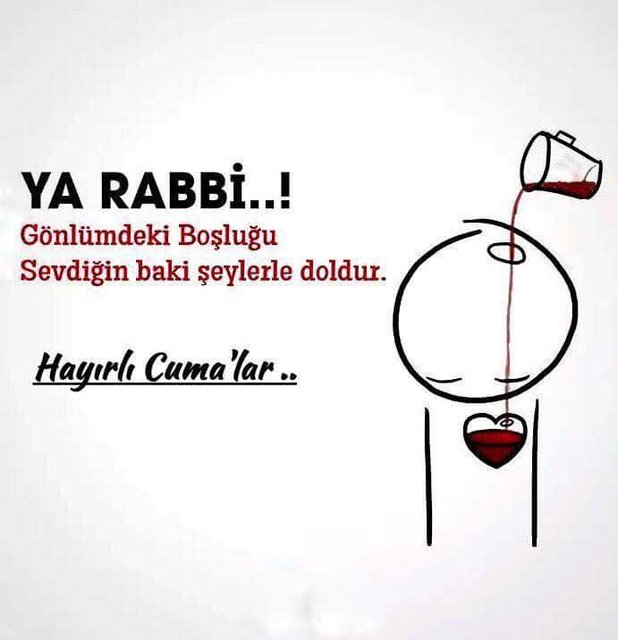 Allah'ım! Bu mübarek Cuma günü hürmetine, bizi sevdiğin kullar arasına kat, bizi çok sabreden, çok şükreden kullarından eyle. Seni çok analım ömrümüz seviğin ve razı olacağın işlerle (amellerle) geçsin. Sıhhat ve afiyet daim eyle. Sevdiklerimizi bize bağışla. Amin! Hayırlı Cumalar.
