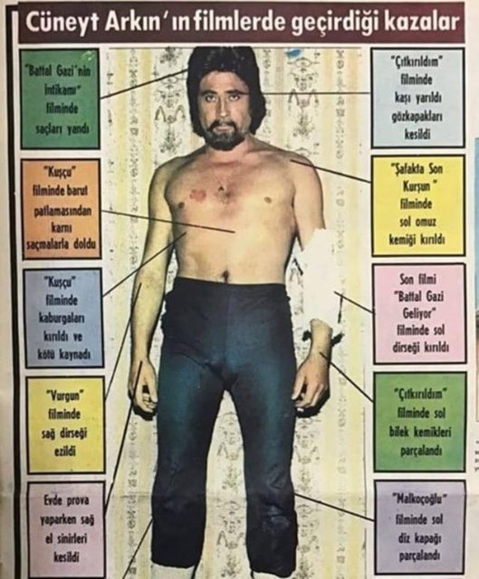 Betül Işıl Cüreklibatur ile mutlu bir evlilik sürdüren usta oyuncu Cüneyt Arkın, geçtiğimiz günlerde de yıllar içinde çektiği filmlerdeki kazalardan aldığı yaraların izlerini yayınlamıştı.