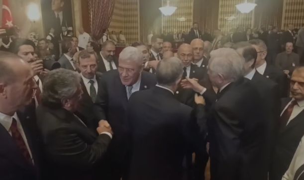 Türkiye Büyük Millet Meclisi'nde düzenlenen 23 Nisan Resepsiyonu'na katılan DEM Parti Eş Genel Başkanları Tuncer Bakırhan ve Tülay Hatimoğulları, Türkiye İstiklal Derneği Gazileri Genel Başkanı Torun Mengüloğlu ile bir araya geldi. Öte yandan İYİ Parti Lideri Müsavat Dervişoğlu DEM Eş Başkanı Tuncer Bakırhan, DEVA Partisi Genel Başkanı Ali Babacan ve MHP kurmayları ile sohbet etti
