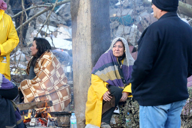 Depremzedeler soğuk havada ateşin başında güzel haberler bekliyorlar...