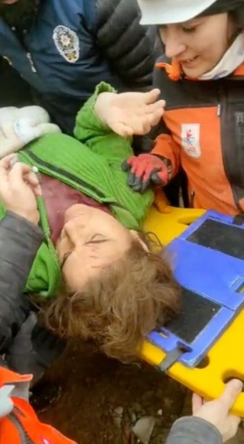 Hatay'ın Odabaşı Mahallesi'nde bir binanın enkazından sağ olarak çıkarılan 30 yaşındaki Hülya Yılmaz ve 6 aylık bebeği Ayşe Vera...