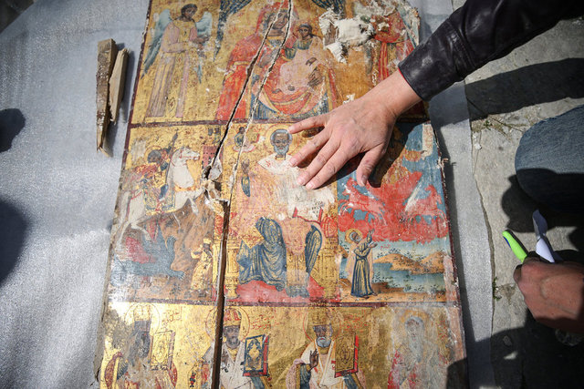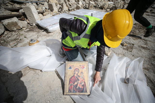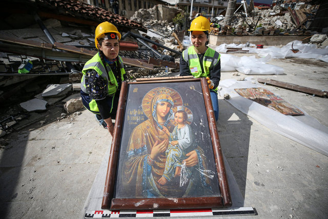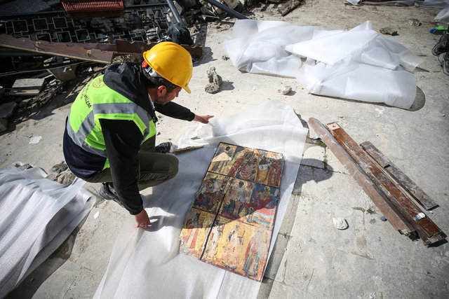 Depremde yıkılan kilisenin enkazından çok sayıda ikona ve İncil çıkarıldı