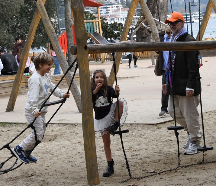 Ünlü oyuncu; "Çocukları dedelerine getiriyoruz, hem ailece zaman geçiriyoruz hem de işimizi sürdürüyoruz. Bugün de güzel havayı fırsat bilip kahvaltı yaptık, biraz da parka uğrayıp çocukları eğlendirdik. Yarın tekrar Urla’ya döneceğiz" dedi.