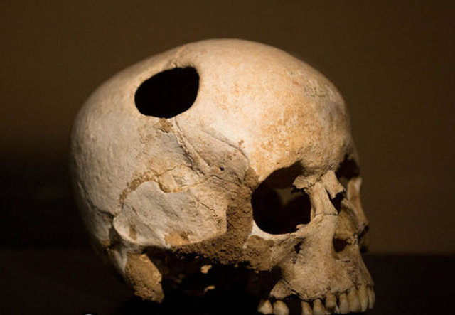 İlk çağlarda arkeologlar tarafından yapılan çalışmalara göre tarih öncesi kafatasları incelendiğinde bir delik görülüyor.