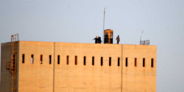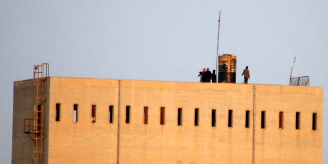 Şanlıurfa'nın Akçakale İlçesi'nin karşısındaki Suriye'nin Telabyad kentinde IŞİD militanları, bir binaya telsiz sistemi kurdu