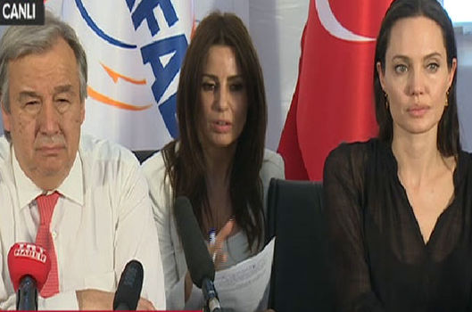 BM Yüksek Komiseri Antonio Guterrez ve BM İyi Niyet Elçisi Angelina Jolie Mardin temaslarının ardından basın toplantısı düzenledi.