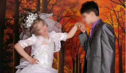 Evlendirilen çocukların sosyal medyada yayınladığı fotoğraflarsa tartışma konusu oldu. Zira fotoğraflarda erkek çocuğu gri bir takım elbise giydiği, kız çocuğunsa gelinlik giydiği ve abartılı makyaj yaptığı görülüyor.