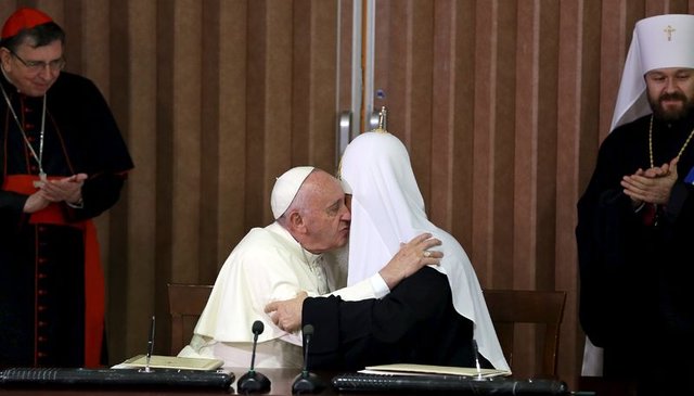 Papa Francesco ve Patrik Kirill toplantının sonunda ortak bir deklarasyona imza attı. Ortodoks ve Katolik kiliselerinin liderleri, 11. yüzyılda kiliselerin ayrılmasının ardından ilk kez görüştü.