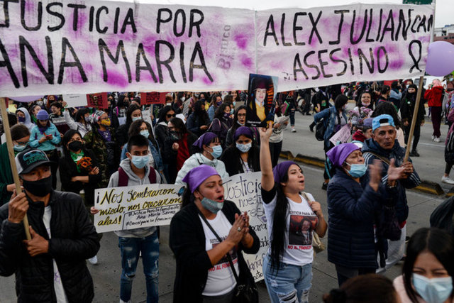 Kolombiya'nın başkenti Bogota'da Kadına Yönelik Şiddete Karşı Uluslararası Mücadele Günü dolayısıyla yürüyüş düzenlendi.