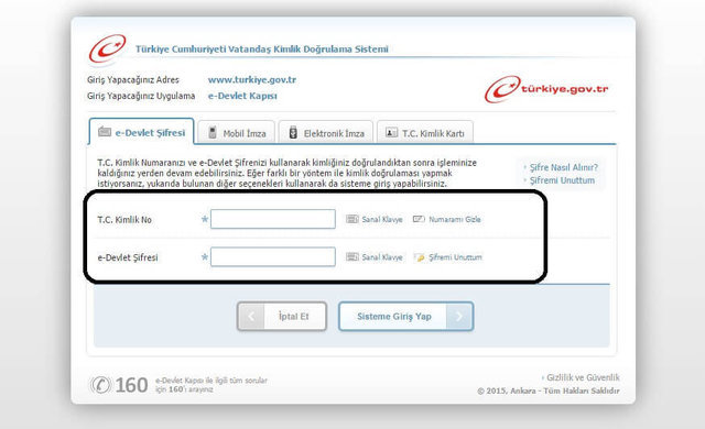 Mobil imza veya elektronik imza kullanıcısı iseniz bunlardan biri ile de sisteme giriş yapabilir, dilerseniz şifre oluşturabilirsiniz.