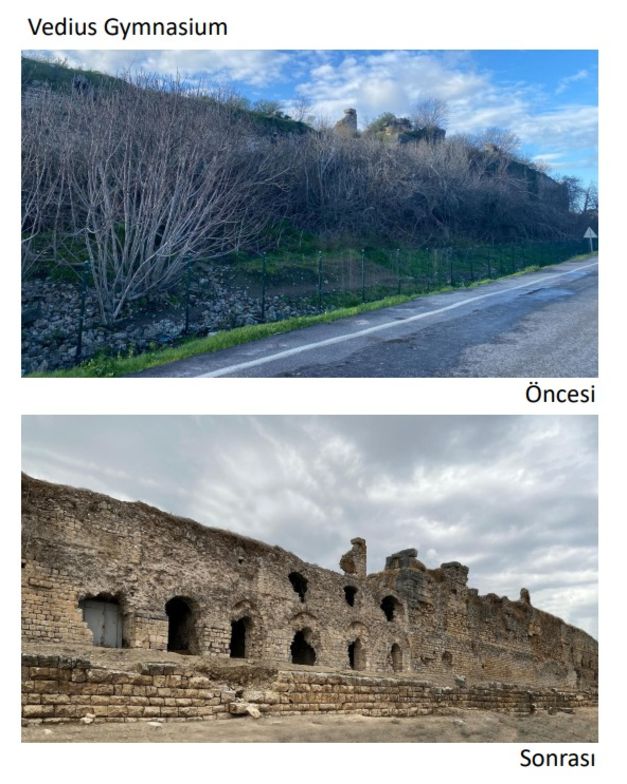 Uygulama çalışmalarına 2025 yılı Ocak ayında başlandığı, sürecin Kazı Başkanlığı, Kazı Koordinatörlüğü, Müze Müdürlüğü uzman arkeologları ile İzmir Rölöve ve Anıtlar Müdürlüğü denetiminde sürdürüldüğü bildirildi. Yeni Ziyaretçi Karşılama Merkezi için Bakanlığımızca ilgili Belediyesine ruhsat başvurusunda bulunulmuş ancak söz konusu başvurumuz süresi içerisinde sonuçlandırılmadığından mer’i mevzuat kapsamında yasal süresi içinde Bakanlığımızca gerekli belgeler temin edilerek Çevre Şehircilik ve İklim Değişikliği İl Müdürlüğü’nden inşaat ruhsat alınmış olduğunu ifade etti.