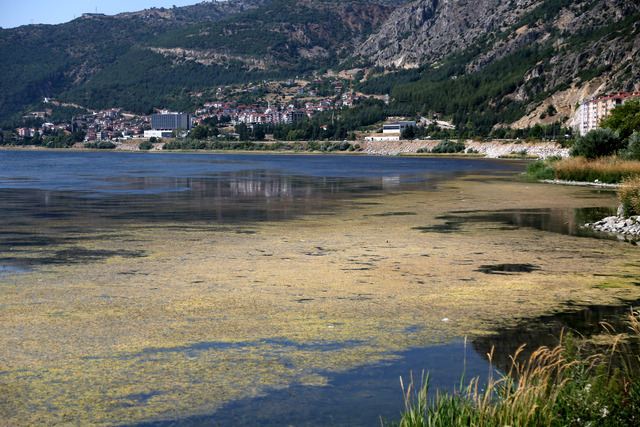 Kirliliğin göstergesi su yosunları olarak da bilinen algler ile göldeki otçul balıkların tükenmesine bağlı hızla çoğalan su bitkileri, göl yüzeyini kapatmaya başladı.