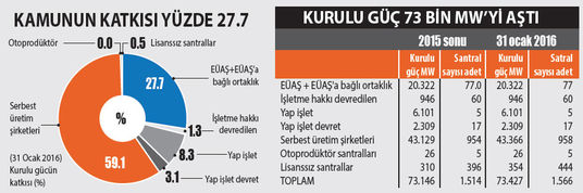 Enerji Bakanı Berat Albayrak, elektrik üretiminde yüzde 70 özelyüzde 30 kamu payı olduğunu anlatırken şu mesajı verdi: “Özel sektörün çok öne çıkmasından korkmamak gerekiyor. Kuralları doğru belirleyip iyi uygularsanız, hiç sorun olmaz. Ben devletin enerji üretiminden tümüyle çıkmasını da doğru bulmam. Kamunun anlamlı bir payı kalmalı. Bankacılıkta olduğu gibi. Orada da bunun faydasını gördük, yaşadık.”
