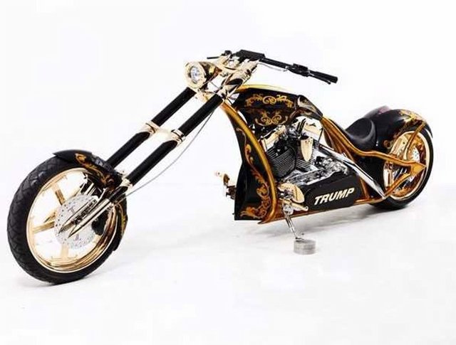 Orange County Choppers adlı motosiklet kulübünün üyesi olan Trump'ın 24 ayar altın motosikleti bulunuyor.