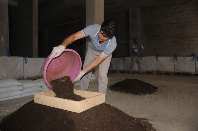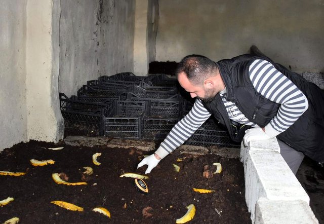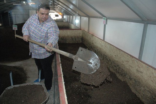 "Önce altı, yedi ay solucanların gübre yapmasını bekliyoruz. Sonra haftalık kesim yapıyoruz gübrelerde. Aylık ortalama iki ton kadar gübre elde ediyoruz."