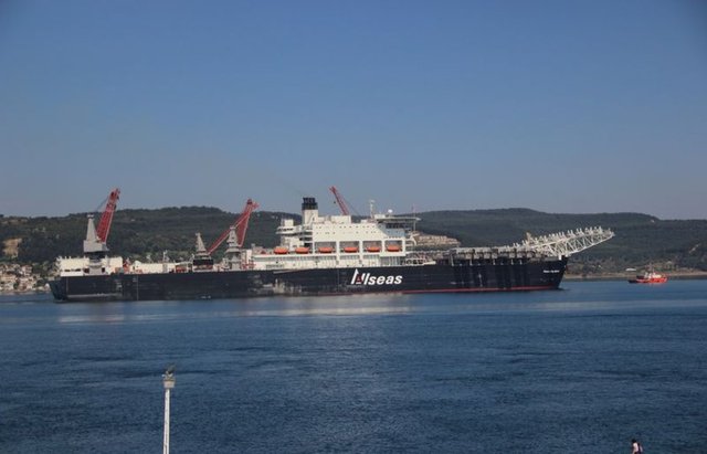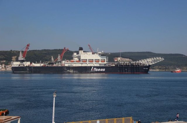 Hollanda'dan Rusya'ya giden dev kablo döşeme gemisi "Pioneering Spirit", Çanakkale Boğazı'ndan geçti.