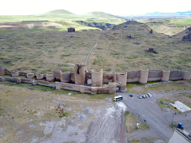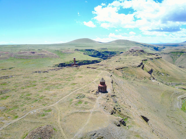 UNESCO Dünya Miras Listesi'nde yer alan, "Dünya Kenti", "Medeniyetler Beşiği", "Binbir Kilise" ve "40 Kapılı Şehir" olarak da adlandırılan Ani Örenyeri'nde bulunan, Anadolu topraklarındaki ilk Türk camisi olduğu belirtilen "Ebul Menucehr Camisi", "Amenaprgiç Kilisesi", "Ani ", "Ani Katedrali", "Dikran Honentz Kilisesi" ve "Abugamir Pahlavuni Kilisesi", Anadolu Ajansı ekibi tarafından "drone" ile havadan görüntülendi