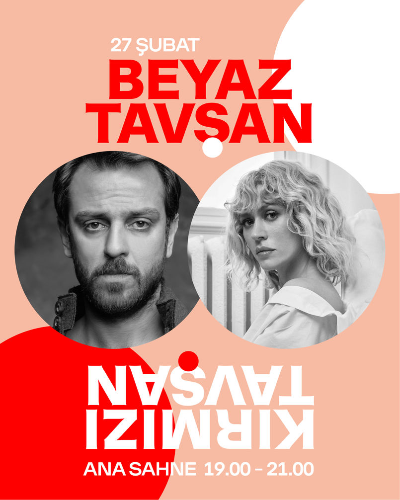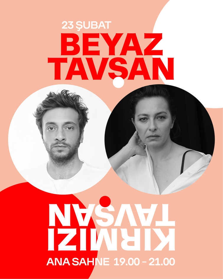 23-27 Şubat tarihleri arasında, her gece farklı bir oyuncuyla provasız, yönetmensiz, her temsilin bambaşka bir maceraya dönüştüğü Beyaz Tavşan Kırmızı Tavşan sahneleniyor. Yazar Nassim Soleimanpour’un, ülkesinden çıkamadığı yıllarda yazdığı, özgürlük arzusunu, iç sesini, kuşağının yaşadıklarını içine sakladığı hikâye, her oyuncu tarafından tekrar tekrar farklı dillerle yorumlanıyor. 2011’den bugüne, 30’dan fazla dile çevrilen, 3.000’in üzerinde sahnelenen oyun, hem güldüren hem de insanın içini burkan, düşündüren, şaşırtan bir deneyim oluyor. Her oyuncuyla yeniden yazılan, yeniden canlanan ve yeniden var olan oyun, herkesin bildiği tiyatro kurallarını bir kenara bırakıp: “Peki şimdi ne olacak?” diye nefeslerin tutulduğu deneyime dönüşüyor. Tek bir oyunun 40 oyuncu tarafından 40 akşam ve 40 farklı duyguyla verileceği oyunun şubat programı 23 Şubat Pazartesi 19.00’da Onur Ünsal ile başlıyor. Aynı akşam 21.00’de temsil Ayça Bingöl’ün olurken, 24 Şubat Salı 19.00’da Şevval Sam, 21.00’de İdil Sivritepe oyun için sahneye çıkıyor. 25 Şubat Çarşamba 19.00’da Melikşah Altuntaş, 21.00’de Selen Öztürk’ün sergileyeceği performanslar sonrası oyun 26 Şubat Perşembe 19.00’da Funda Eryiğit, 21.00’de Sezin Akbaşoğulları tarafından canlandırılıyor. Beyaz Tavşan Kırmızı Tavşan’ın şubattaki son oyunları ise 27 Şubat Cuma 19.00’da Erkan Kolçak Köstendil, 21.00’de Hazal Türesan’ın sahnesiyle tamamlanıyor.