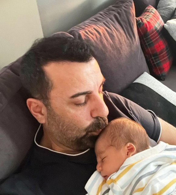 Emre Karayel, 2 ay önce oğluyla bu fotoğrafını, "Zamanın durduğu an... 'Bebekler enerjinizi hissediyor' derlerdi de inanmazdım. Oğlum ağladığında ona, 'Babacığım yanındayız. Annen, baban seni çok seviyoruz. Korkma' diyorum, susuyor yeminle. Deneyin, bayılacaksınız." notuyla paylaşmıştı.