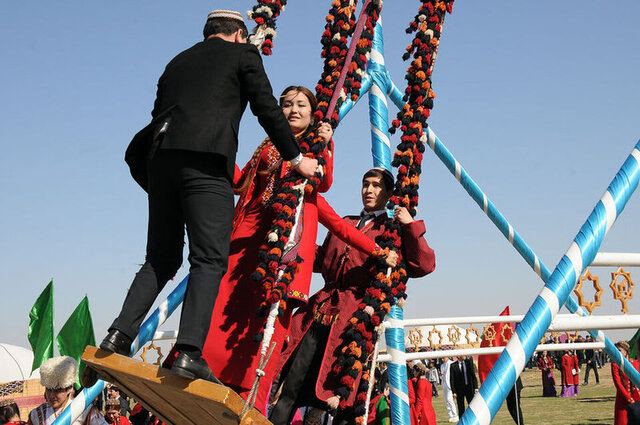 Kurban Bayramı gelenekleri arasında bayram boyunca ülkenin sokaklarını dolduran salıncakları vardır. Geleneksel kıyafetler ile bayramı kutlayan Türkmenistanlılar, salıncaklarda sallanarak gühanlarından arınacaklarına inanırlar.