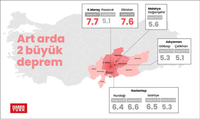 Fay hattında bulunan ilçeler... Kahramanmaraş merkezli 7,7 ve 7,6 büyüklüğündeki depremler sonrasında diri fay hattı haritaları ve fay hattı üzerinden geçen iller ile ilçeler gündeme geldi. Deprem kuşağında yer alan Türkiye'de Doğu, Kuzey ve Batı Anadolu olmak üzere üç büyük fay hattı bulunmaktadır. Doğu Anadolu Fay Hattı üzerinde meydana gelen Kahramanmaraş depreminin ardından doğrudan diri fay üzerine oturan, 45 il alanı üzerindeki 110 ilçe hakkında detaylar merak ediliyor. İşte aktif faylardan geçen ilçeler...