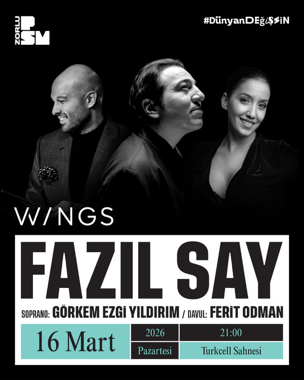 Sahnede 50 yılı aşan Türk müziğinin dahi piyanisti Fazıl Say, soprano Görkem Ezgi Yıldırım ve caz davulunun uluslararası temsilcilerinden Ferit Odman, Wings'in katkılarıyla 16 Mart akşamı Zorlu PSM Turkcell Sahnesi'nde benzersiz bir konser için bir araya geliyor. Bu özel buluşmada üç isim, klasik müzik ile cazın sınırlarını aşan özgün bir diyalog kuruyor.