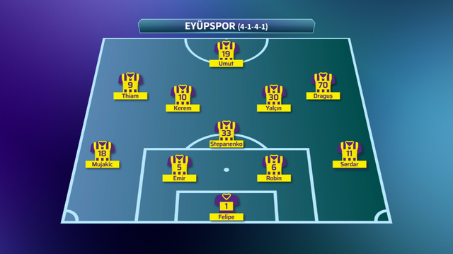 EYÜPSPOR: Felipe, Serdar, Robin, Emir, Mujakic, Stepanenko, Yalçın, Kerem, Draguş, Thiam, Umut