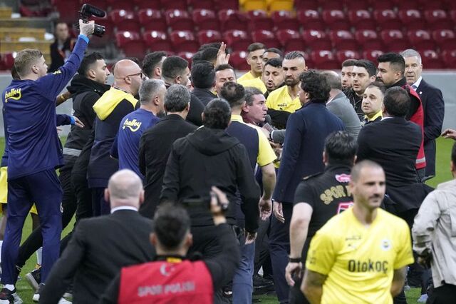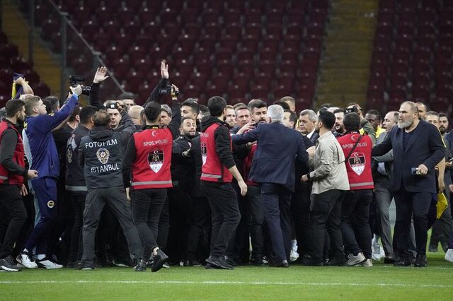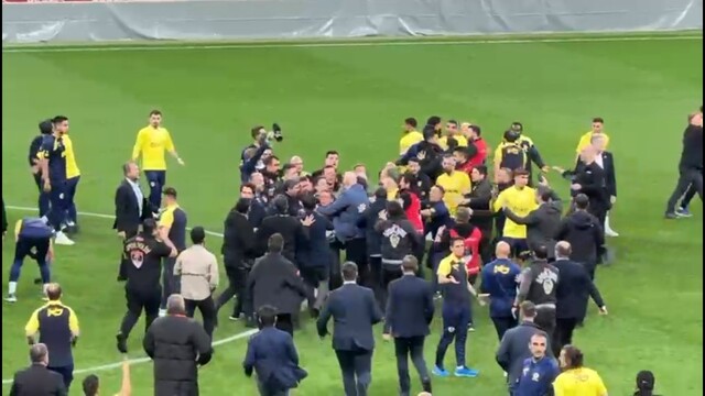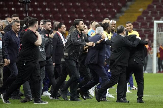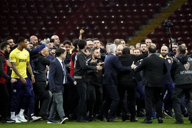 Saha içindeki kavgada Başkan Ali Koç ve statta bulunan Fenerbahçeli yöneticilerin tamamı zeminde bulunurken, Galatasaray Genel Sekreteri Eray Yazgan, stat müdürü ve yetkililer ile Başkan Dursun Özbek'in şoförünün darbe aldığı görüldü.