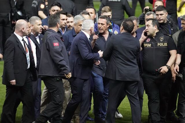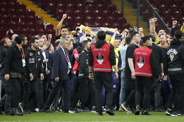 Fenerbahçe Kulübü Başkanı Ali Koç, yönetim kurulu üyeleriyle takımı tebrik etmek için RAMS Park'a geldi. Futbolcularla beraber sahaya çıkan başkan Koç ve yöneticiler, galibiyeti kutladıktan sonra gerginlik çıktı.