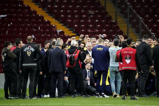 Fenerbahçe takımı ve yöneticilerinin tekrar sahaya çıkmaları Galatasaraylı görevliler tarafından engellenmeye çalışılsa da sarı-lacivertliler sahaya girdi ve Fenerbahçe bayrağı açtı.
