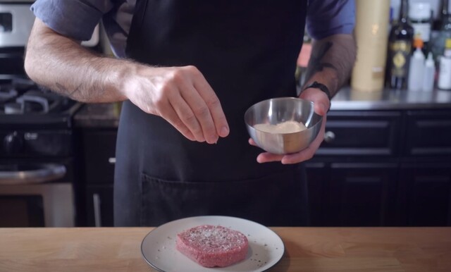 Isınırken kıymayı, baharatları, biberi ve tuzu birleştirin. Her biri yaklaşık 150 gram olacak şekilde dört eşit boyutlu köfte haline getirin. Ocağın yanındaki tabağa koyun.