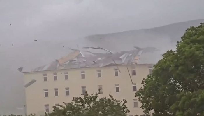 Tunceli'nin Mazgirt ilçesinde etkili olan fırtınada binanın çatısının uçtuğu anlar, cep telefonu kamerasına yansıdı