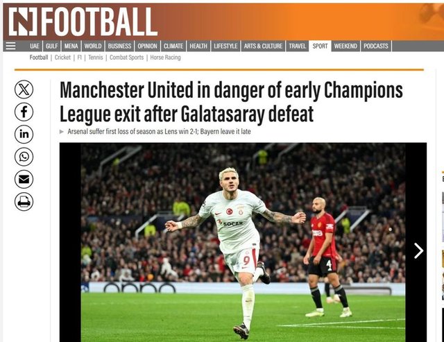 The National News: Old Trafford'daki maçta Galatasaray'a 3-2'lik utanç verici bir yenilgiyle boyun eğen Manchester United, Şampiyonlar Ligi A Grubu'nda dibi gördü. ManU turnuvaya erkenden veda edebilir!