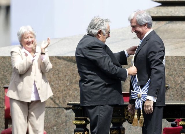 Tüm bunların ardından devir teslim törenine geçildi. Mujica yerini Tabaré Vazquez'e bıraktı. (DHA)