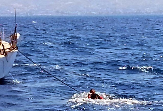 deniz yatağı ve can simidiyle denize açılan üniversite öğrencisi 3 Suriyeli kaçak göçmen akıntıya kapılıp, sürüklenirken Türk Sahil Güvenlik ekipleri tarafından kurtarıldı.