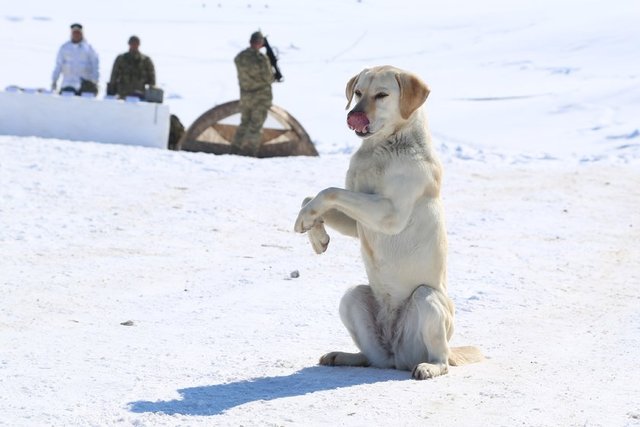 Sergide, cep sobası, arama çubukları, emniyet halkası, kar gözlüğü gibi çığ malzemeleri ile arama kurtarma köpeği "Alcan" tanıtıldı.