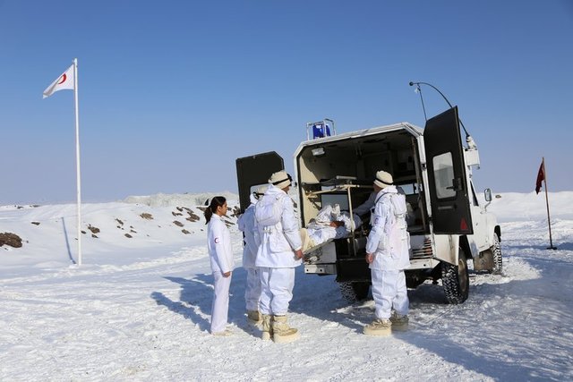- Kar kalınlığı yer yer bir 1,5 bulan arazide çatışma sırasında yaralanan personel, zırhlı ambulanslarla tahliye edildi. Savaşta esir alınanlar da harp esiri toplama noktasına ulaştırıldı. -