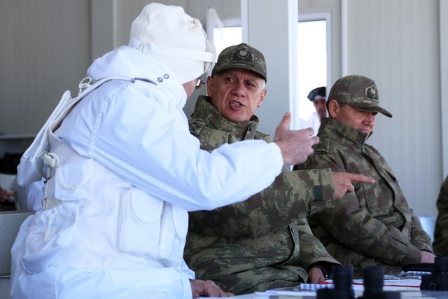 3. Ordu Komutanı Orgeneral Ümit Dündar, 9'uncu Kolordu Komutanı Korgeneral Şeref Öngay, 14. Mekanize Piyade Tugay Komutanı Tuğgeneral Kenan Kalay ile askeri erkan da tatbikatı izledi. -
