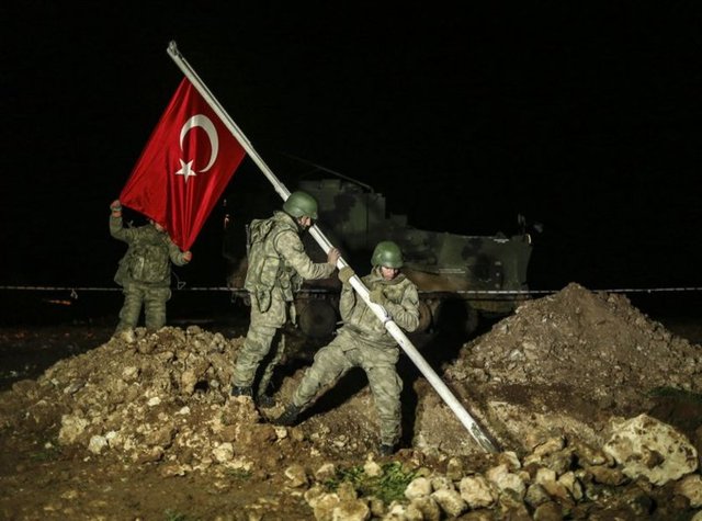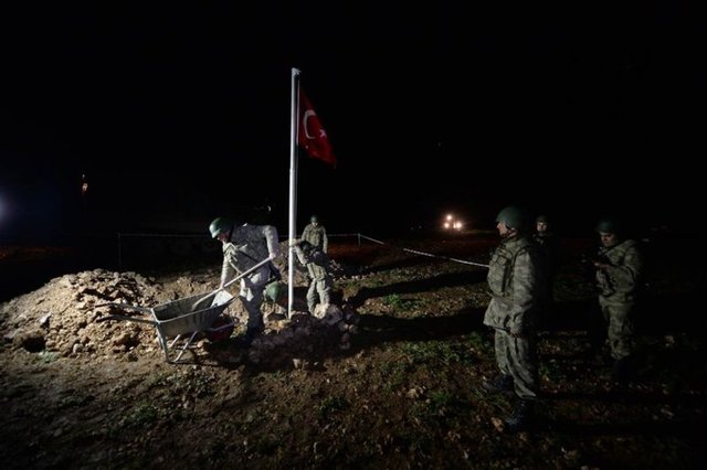 Süleyman Şah'ın naaşının nakledileceği Suriye Eşmesinde bir bölge kontrol altına alınarak Türk Bayrağı göndere çekildi.