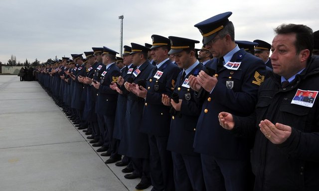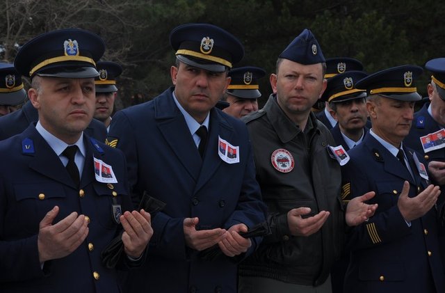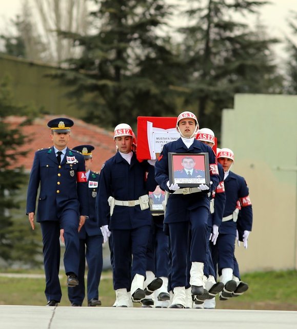 Eskişehir 1'inci Ana Jet Üssü 112'nci Filo Komutanlığına ait bir uçağın dün Konya'da düşmesi sonucu şehit olan Kurmay Yüzbaşı Pilot Mustafa Tanış ve Kurmay Yüzbaşı Pilot Mustafa Delikanlı için Eskişehir'de tören yapıldı