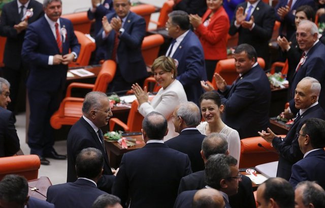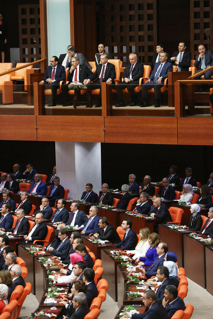 TBMM'nin 25. dönem açılış oturumunda, AK Parti, CHP, MHP ve HDP milletvekilleri hazır bulundu. TBMM'deki oturumda objektiflere ilginç kareler yansıdı.