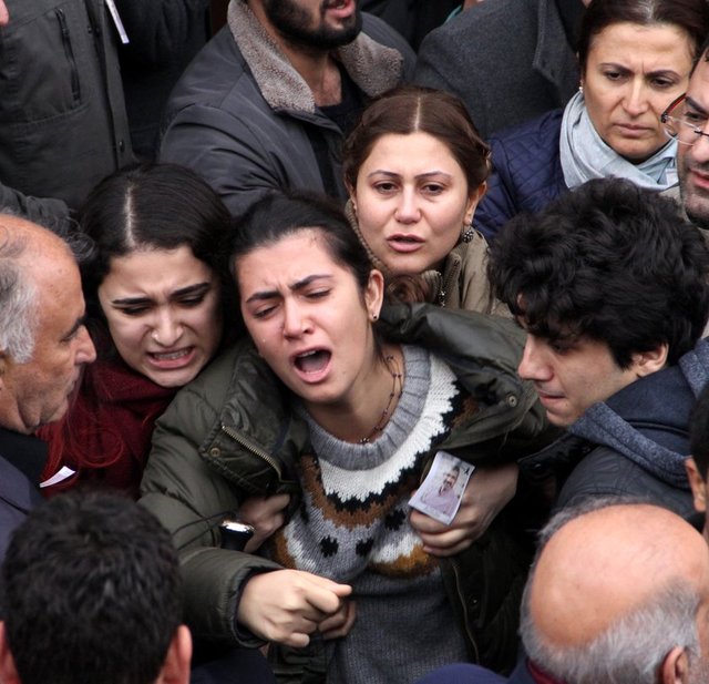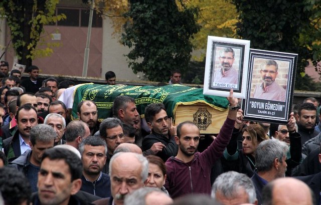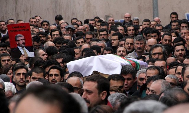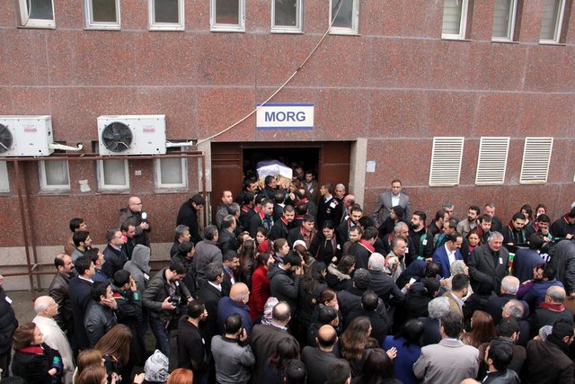 Diyarbakır Baro Başkanı Tahir Elçi'nin cenazesini almak için avukatlar, yakınları ve vatandaşlar Selahaddin Eyyubi Devlet Hastanesi morgu önünde toplandı