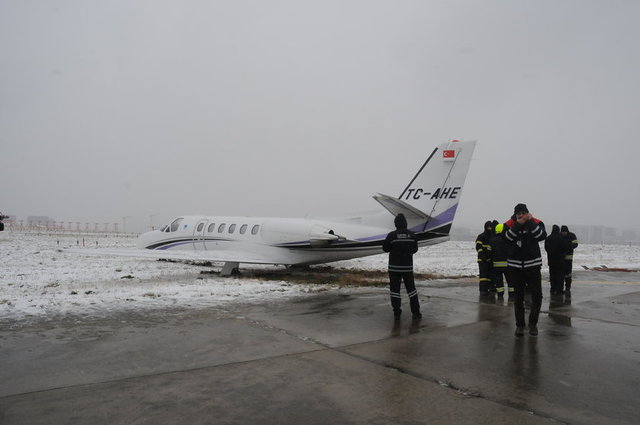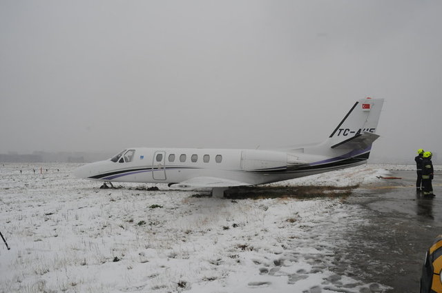 İçinde işadamı Adnan Polat'ın da olduğu, bir havacılık şirketine ait Cessna Citation 550 tipi uçak, Atatürk Havalimanı'nın Florya-Sefaköy yönündeki pistine teker koydu.