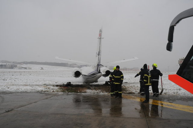 2005 model 7 yolcu kapiseli uçağın ön ve arka lastikleri kara saplandı. Uçağı kurtarmak için çalışmalar devam ediyor.